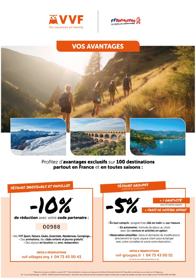 - d'un accès aux voyages de randonnée organisés par les clubs, les comités de la Fédération ou les partenaires privilégiés
