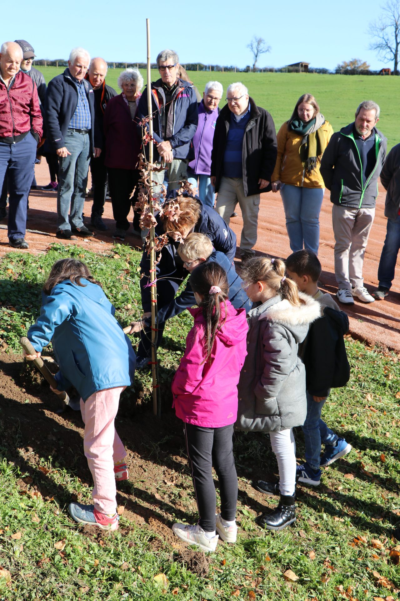 7 novembre : plantation d'arbres le long du nouveau chemin avec les écoliers, le foyer "La Roche Félines" et les "Pas Pressés".